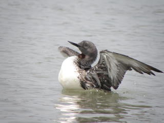 | 特徴 | 広島県の県鳥。冬鳥として主に九州以北の沿岸に飛来します。日本産アビ類では最も小型です。嘴は黒くて細く,少し上向きになっています。体下面は白色です。見る機会の多い冬羽では茶褐色の体上面に白い「逆ハの字」状の斑が多数出ます。夏羽では体上面が灰色がかり,喉が赤褐色になります。 |
