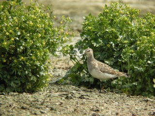 | 特徴 | 少ない旅鳥として内陸の水田,蓮田などでみられます。ウズラシギと比べて全体的に赤みに乏しく,嘴の基部はオレンジ色みがかっています。胸の斑は密で,胸と腹の境で明瞭に途切れています。腹には斑がほとんどなく,白色です。また胸を張って静止することが多かったです。 |