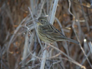 | 似ている種 | ノジコは体色が似ていますが,雌雄とも脇腹の縦斑は目立たず,特に雄では白いアイリングが目立ちます。クロジは雌雄とも体色に黄色みはありません。かつては本種の亜種とされたシベリアアオジの雄は胸も灰色で,雌は黄色味に乏しいです。また,シベリアアオジの外側尾羽三対に白色部があります。 |