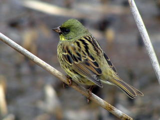 | 特徴 | 北海道〜本州北部で繁殖し,冬は暖地へ移動します。和名はアオ〜ですが,体色,特に腹面では黄色みが強く,飛翔時でも色彩が確認できます。雄の頭部は灰色みが強く,雌でも黄色い眉斑の上下は灰色みがかっています。また,雌雄とも腹に黒色の縦斑が目立ち,尾羽外側二対には白色部があります。冬季は平地から山地にかけての林縁や河川敷,公園のやぶなどで見られます。 |