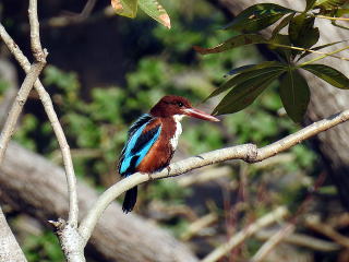 | 特徴 | 迷鳥として,南西諸島から数例の記録があります。喉から腹にかけては白色で,そのほかは栗色,翼の上面は光沢のある水色,小・中雨覆は黒褐色です。主に水辺で棲息し小魚,カエルなどを捕食します。 |