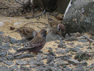 | 特徴 | 冬鳥として本州以北の山地で見られますが,海岸の崖などにもいることがあります。和名の通り腹部は萩色で雄の方が概して濃い色です。翼の上面や腹には黒〜こげ茶が目立ち,マシコ類では最も暗色に見えます。後頭部は雌雄とも黄土色でよく目立ちます。 |