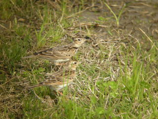 | 似ている種 | 冠羽が確認できれば,混同するおそれがある種はまず,いません。ホオジロ類は頭部に円みがあり,体色も異なります。名前の似るタヒバリはセキレイ科でやや小さく,小刻みに尾を振ります。タイワンヒバリを除き,他のヒバリ科鳥類には冠羽が目立ちません。タイワンヒバリは酷似しますが,小型で,飛翔時にヒバリのような次列風切の縁の白色部が見られません。また,タイワンヒバリはきわめて数が少ない迷鳥です。 |