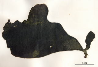 和名の通り,全形は平板形。しばしば1mに達するほど長くなります。小嚢は他のミル類より小さく,藻体の色はやや黒みがかっています。標本にすると台紙につきにくいです。