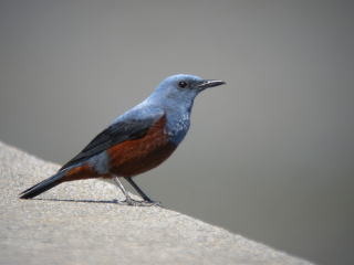 | 特徴 | 留鳥として本州以南の沿岸部で見られます。小笠原や沖縄本島では特に多く見られます。近年では内陸に進出し,海から離れた集落でもみることがあります。雄の体上面や尾は青色で体下面の多くは濃いオレンジ色です。雌は全体的に黒褐色で体上面には薄い青色部が見られます。また,雌や幼鳥の羽縁には黒色部があり,うろこ状に見えます。まれに飛来する別亜種アオハライソヒヨドリは体下面も青色です。海岸線できれいなさえずりを聞いた場合,多くは本種です。 |