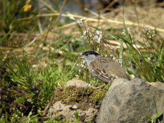 | 特徴 | これまでに数例の記録しかない北米産の迷鳥。雌雄同色で,和名の通り頭頂が黄色,繁殖羽では側頭部が黒色になります。右の写真を撮影した際,さえずりを聞くことができましたが,オオルリのそれに似ていました。 |