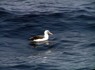 | 特徴 | 鳥島や北西ハワイ諸島で繁殖し,非繁殖期は北太平洋を回遊します。日本近海では夏季に北海道太平洋岸沖,冬季に本州から四国の太平洋岸沖で見やすいです。背および翼上面が黒く,頭部や腰は白色です。尾羽が黒く,サブターミナルバンドのように見えます。 |