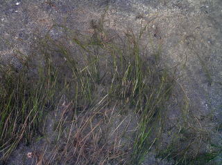 | コメント | 平行脈は2〜3本で,アマモより明らかに葉身が細く,「華奢」な感じがします。大潮などでは写真のように露出することもあります。近年の研究により,南西諸島に分布するタイプと亜種で区分され,本亜種は亜種コアマモとされました。葉身の先端は中央がほんの少しくぼむか全くくぼまず,先端付近では葉身を横断する葉脈が見られないことが本亜種の特徴です。 |