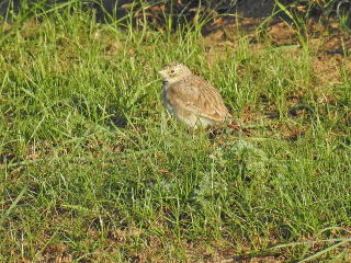 | 特徴 | まれな旅鳥として各地で記録があります。農耕地や海岸,河川敷など,砂混じりの草地で記録されています。冠羽は目立たず,丸みを帯びたプロポーションです。初列風切が三列風切より突出します。眉斑は目立たず,かわいい顔の印象です。 |