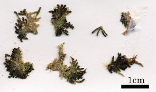 | コメント | 非常に小型の種で,小枝が輪生して直立枝の全面を取り巻きます。このため,飾り付けに使う「モール」のような海藻です。 |
