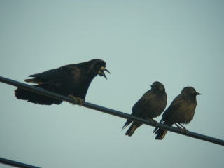 | 写真のデータ | (左)幼鳥(暗色型):鹿児島県出水市 2009年2月2日 (右)成鳥(淡色型)と幼鳥(暗色型):群馬県板倉町 2009年2月15日 ※左の写真の左端はミヤマガラスです。大きさの違いが明瞭です。 |