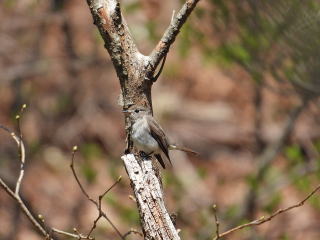 | 特徴 | 夏鳥として九州北部から北海道にかけて渡来し,主に山地(南にいくほど高所になる)の広葉樹林で繁殖します。サメヒタキ類では最も小さく,腹がほとんど白色,眼の周りの白色部が明瞭になります。また,下嘴の基部から半分くらいまでが黄色みを帯びています。枝先に止まり,昆虫を捕らえては戻るフライキャッチングをよく行います。サメヒタキ類の鮫は体の模様が灰褐色で地味なことから,鮫になぞらえたものと言われています。 |