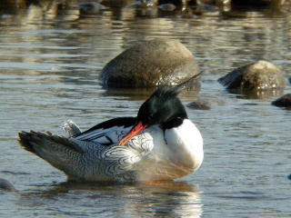 | 似ている種 | カワアイサとウミアイサは本種に似ますが,大型で,脇腹にはうろこ模様がありません。また,カワアイサの雄には冠羽はありません。 |
