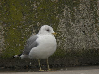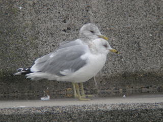 | 写真のデータ | (2枚とも)成鳥夏羽に換羽中:茨城県神栖市 2012年2月26日 ※右の写真,後ろはカモメの成鳥です。嘴の色が違うことがお分かりいただけるかと思います。 |