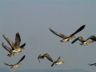 | 写真のデータ | (2枚とも)亜種マガン成鳥:島根県出雲市 2005年11月5日 |