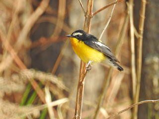 | 特徴 | 数少ない旅鳥として主に日本海側の離島で見られます。和名の通り,雄は眉斑が白く,翼には白斑が入ります。雌は雄に比べて地味で,体上面はオリーブ色みがかったバフ色,体下面は黄色みのあるバフ色です。また,雌の腰はレモン色で目立ちます。 |