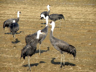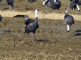 | 写真のデータ | (左)成鳥:鹿児島県出水市 2009年2月2日 (右)成鳥と幼鳥:鹿児島県出水市 2007年1月20日 ※二羽目の頸部が灰色の個体が幼鳥です。 |
