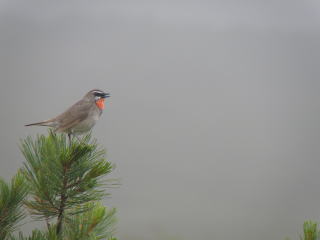 | 特徴 | 夏鳥として北海道や本州北部の山地で繁殖し,他の地域では旅鳥です。南西諸島ではまれに越冬する個体もいます。ほぼ全身がオリーブ褐色ですが,眉斑や顎は白く,雄ではさらに喉が赤くなり,眼の周りが黒色になります。いわゆる「小鳥の声」であり,複雑でよく通る声で囀ります。北海道大雪山系では近年,繁殖個体が増加しつつあるようです。 |