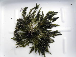 ハネモ類では最大の種で,時に50cmを超えることもあります。肉眼でも充分にわかる「羽根」状の体構造が特徴的です。