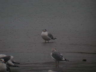 | 特徴 | 数少ない冬鳥として大阪,沖縄,九州有明海沿岸で記録があります。日本産では最も大型のカモメの一種で,和名の通り頭部には黒色斑があります。夏羽では頭部が完全に黒くなります。脚は黄色で,一見すると「大型のウミネコ」のように見えます。 |