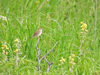 | 特徴 | 夏鳥として北海道の海岸草原などに飛来し,個体数も多いです。他の場所では旅鳥としてみられます。オリーブみのある褐色で,白い眉斑が目立ちます。日本産のセンニュウ類では嘴が細くて短いのも識別ポイントです。早口でよくさえずり,時にディスプレイフライトも行います。 |