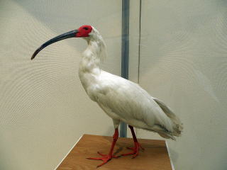 | 特徴 | 新潟県の県鳥。各地から記録がありますが,1981年に最後の野生個体が捕獲され,絶滅しました。現在は中国から導入された個体の子孫が,野外に放鳥されています。大型の水鳥で,顔面と脚が赤,嘴が黒いほかは橙色みがかった白色(朱鷺色)です。繁殖期になると喉から黒色の色素が分泌され,これを嘴を使って全身に塗るので,体上面は灰色になります。 |