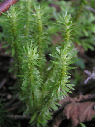 | 写真のデータ | (左)(ホソバトウゲシバ)新潟県南魚沼市 2007年6月9日 (右)(ホソバトウゲシバ)北海道鹿追町 2007年7月31日 ※葉の間に見える黄色の粒は胞子嚢です。 |