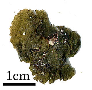 | 似ている種 | シマオオギは褐藻で,生時も茶色です。ボタンアオサに似ますが,網目が見えれば区別できます。また,本種はアオサ類と異なり,がさがさした手触りです。 |