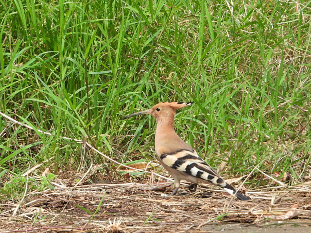 | 特徴 | 旅鳥として南西諸島や日本海側の島嶼をを通過するほか,迷鳥として各地より記録されています。一見するとキツツキ類のような独特の体型であり,長い嘴とすらっとした体のために,意外に大きく見えます。興奮すると頭部にある冠羽を拡げます。これが和名の由来です。学名はおそらく鳴き声に由来しているのでしょう。 |