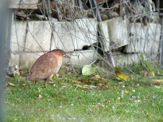 | 特徴 | 留鳥として石垣島,西表島,黒島に分布するほか,冬鳥として宮古島で見られます。徳島県阿南市への迷行例もあります。森林性のサギで,明け方や夕方に林縁へ出ることが多いようです。和名の通り,頭頂部から後頭部,うなじにかけて黒色(濃い藍色に近い感じがします)です。 |